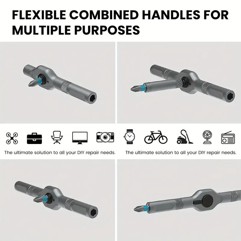 25in 1 Chrome Vanadium Steel Ratchet Screwdriver Set with Magnetic Tips - Multi-Functional Household Repair Tool Kit with Internal Hex Heads, Reversible Handle for DIY, Furniture, Car, Computer, Bike |